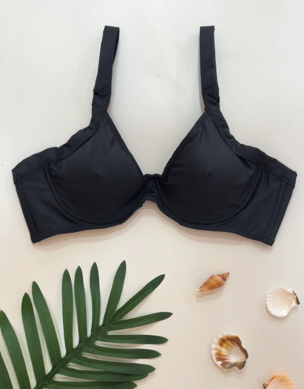 Busto Biquíni Plus retrô com bojo removível preto: o toque de charme e conforto que você merece para arrasar na praia!